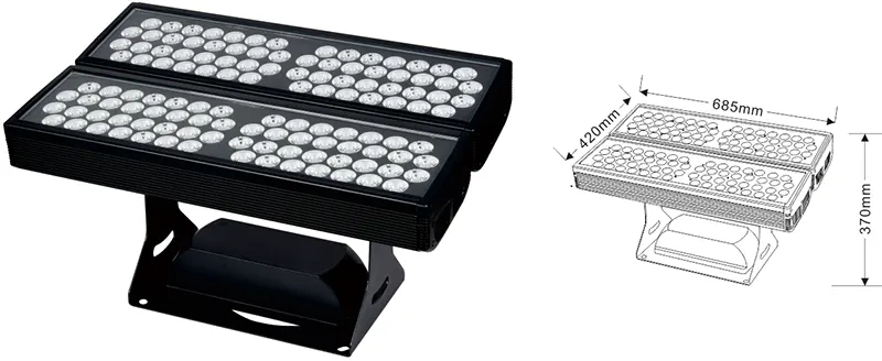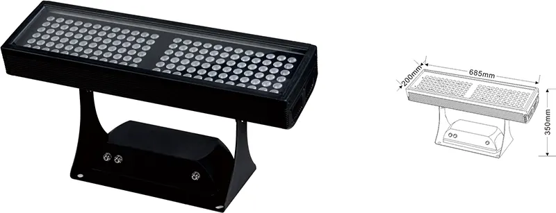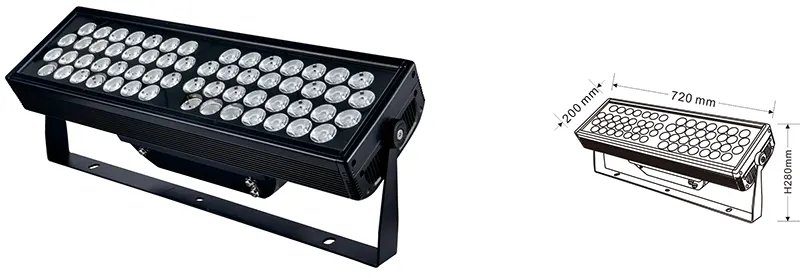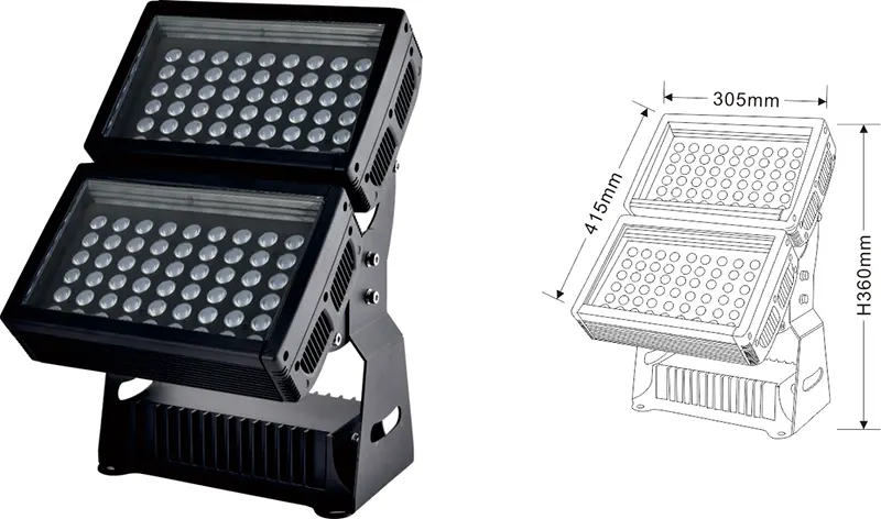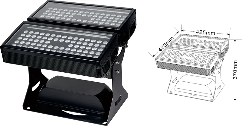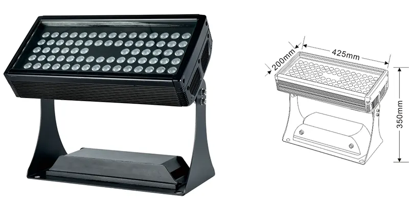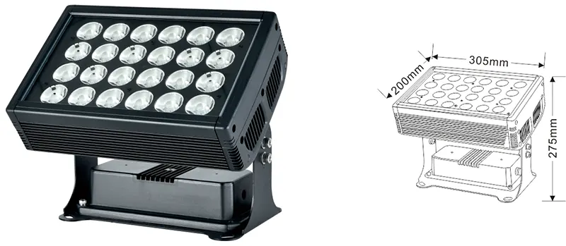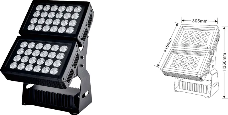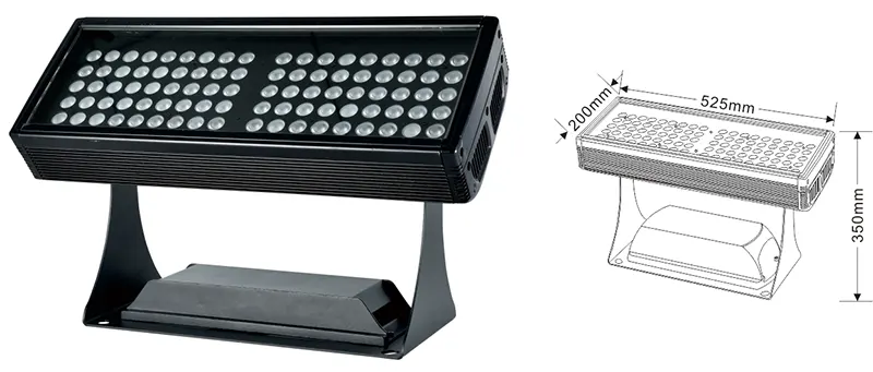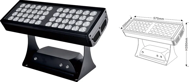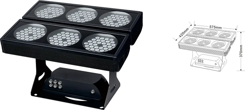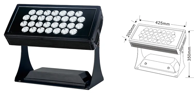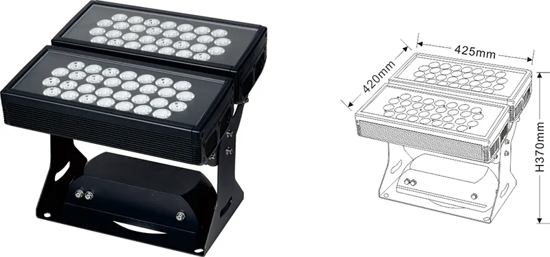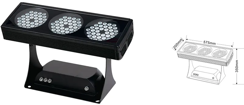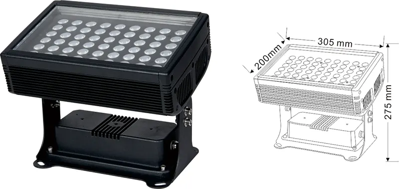 | ДМКС ЛЕД пројектор | Цон-ТГД05-1 | 200 * 200 * Х265мм | 36 * 1.5В | Материјал: алуминијум + каљено стакло Тип носача: подесив ИП: ИП67 Температура у боји опционо: 3000к / 4000к / 6500к РГБ / ДМКС512 РГБВ / ДМКС512 Конвенционално сиво, прилагодљиво за утакмицу грађевинске фасаде боје |