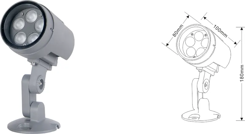 | ЛЕД пејзажна рефлектор | Цон-ТГД07-3 | 80 * 100 * 180мм | 5 * 2В | Материјал: