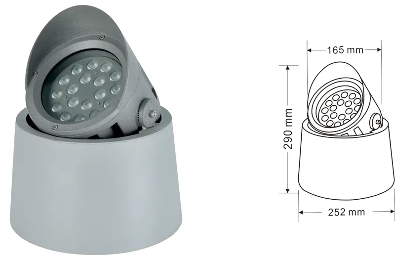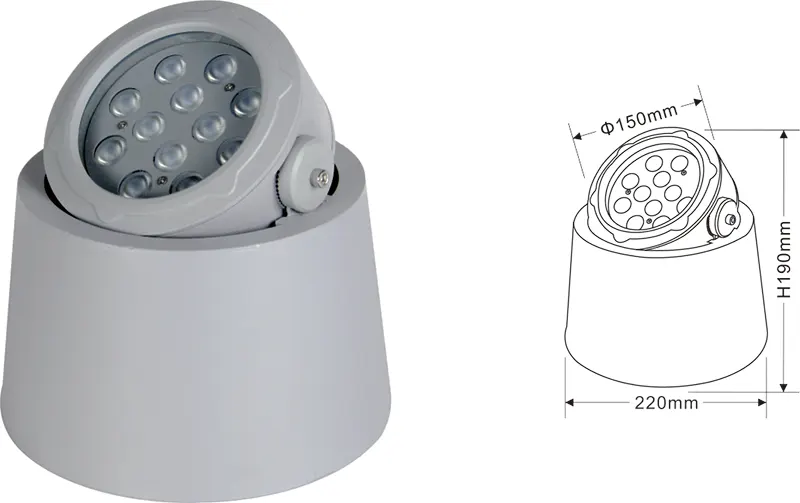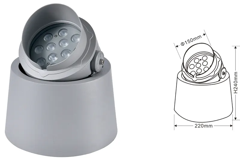 | Врло светло ЛЕД трее | Конс-ТГД10-1 | Φ150 * Φ220 * Х190мм | 12в | Материјал: алуминијум + каљено стакло Тип носача: подесив ИП: ИП67 Температура у боји опционо: 3000к / 4000к / 6500к РГБ / ДМКС512 РГБВ / ДМКС512 Конвенционално сиво, прилагодљиво за утакмицу грађевинске фасаде боје |