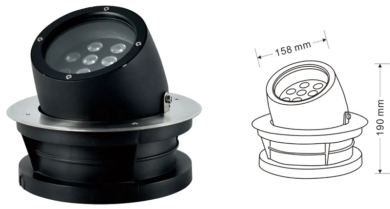 Гровно уграђено причвршћено (ИП67) за осветљење на ранду на узбрдицу.