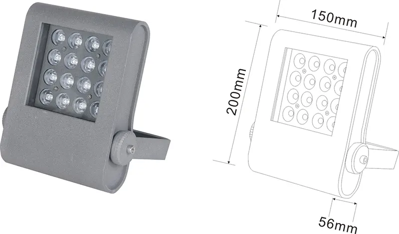 | На отвореном ЛЕД рефлектор | Цон-ТГД03-1 | 200 * 150 * 56 мм | 16в | Материјал: алуминијум + каљено стакло Тип носача: подесив ИП: ИП67 Температура у боји опционо: 3000к / 4000к / 6500к РГБ / ДМКС512 РГБВ / ДМКС512 Конвенционално сиво, прилагодљиво за утакмицу грађевинске фасаде боје |